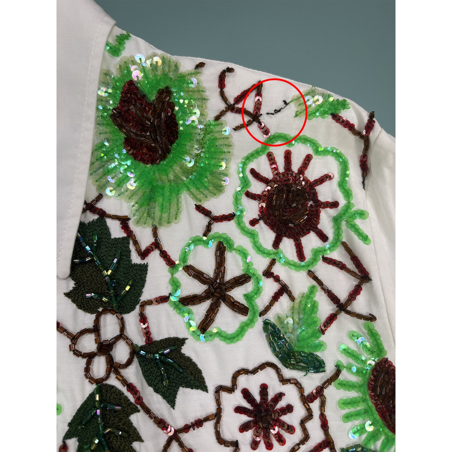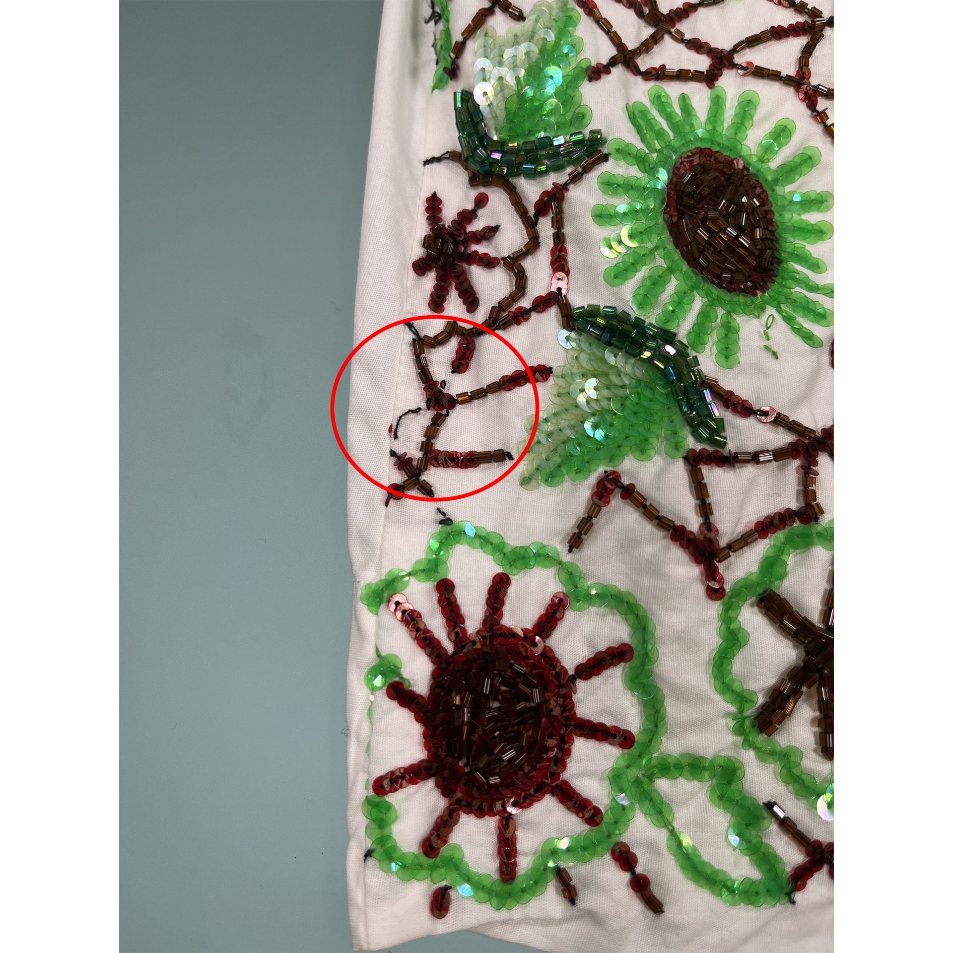 - Imperfection: light stein on the back and missing sequins on the front